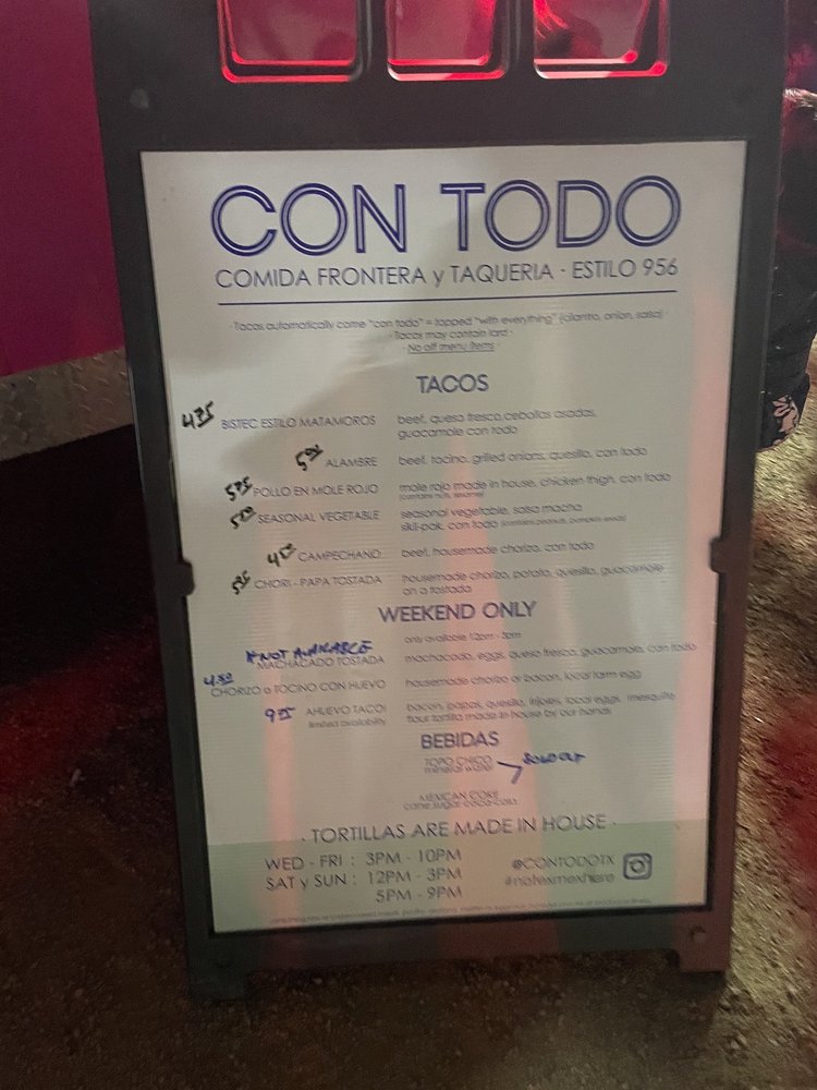 The atmosphere at Con Todo is vibrant and inviting, with friendly service and quick turnaround times. Highlights of their menu include the juicy bistec taco, savory alambre, and perfectly seasoned quesadilla. Despite slightly higher prices compared to other taco joints, the quality and taste of the dishes make it worth every penny. Overall, Con Todo impresses with its authentic flavors and commitment to delivering a satisfying dining experience.